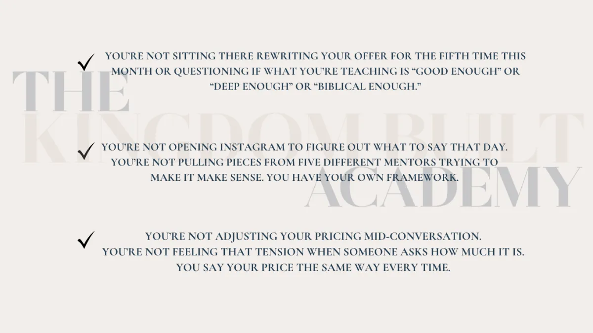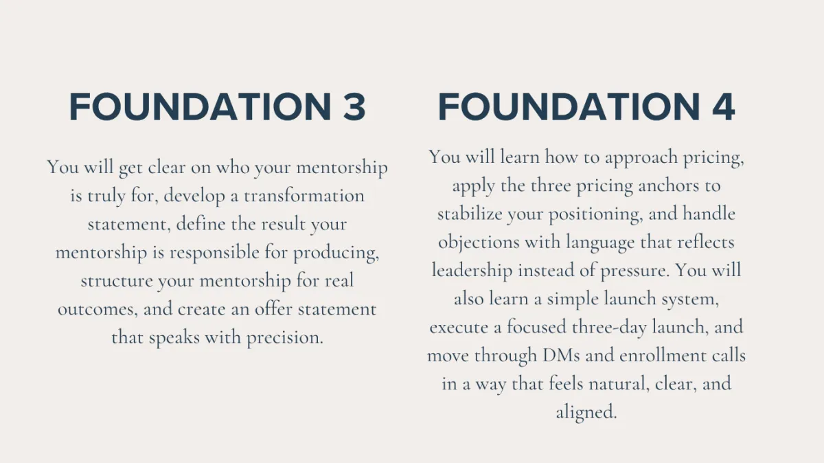 You leave this tier knowing exactly what you teach and how to sell it.